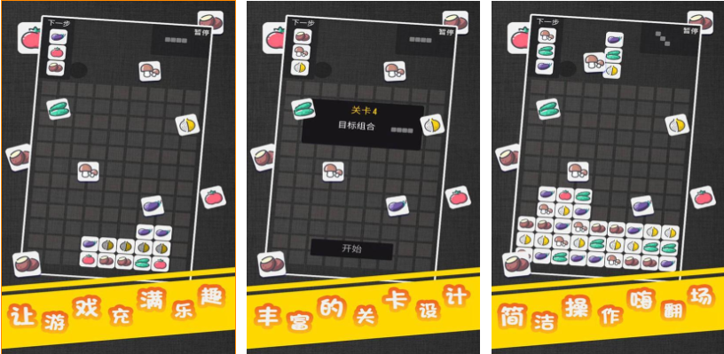 水果消消乐是款适合消磨时间的三消主题单机竖屏游戏,除了基础的三消、点触式消除玩法之外,创新加入的下落式消除模式则更加好玩,堆积蔬菜方块消除的游戏模式与俄罗斯方块异曲同工,老少皆宜的操作机制无疑让众多三消手游粉丝乐在其中,辨识度极高的简约画面与设计细腻的水果造型形成了视觉反差。