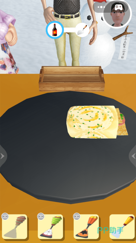 赶紧来一起摊煎饼吧,这是一个非常好玩的游戏,大家可以亲手感受煎饼成熟的过程。每一个来到的顾客都会有自己的要求和口味,所以大家在制作的时候一定要符合客户的要求。而且所有的原材料都会呈现在游戏的屏幕中,操作比较的简单,只需要点击这些原材料就可以自动的添加到煎饼中。