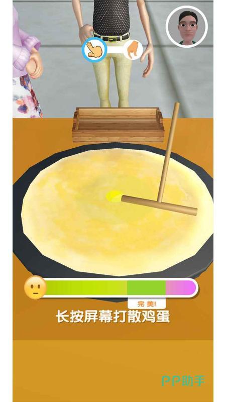 整个游戏采用的是非常治愈的画风,大家作为一名煎饼摊的老板,每天的工作便是去制作各式各样的煎饼,为了让自己的店面营业额更多,所以每一个前来的客人都需要按照他们的要求来制作煎饼,制作煎饼的原材料主要是包括面粉和鸡蛋等,所以大家需要非常合理化的来使用这些原材料。需要等待几秒钟的时间,煎饼果子就成型了。