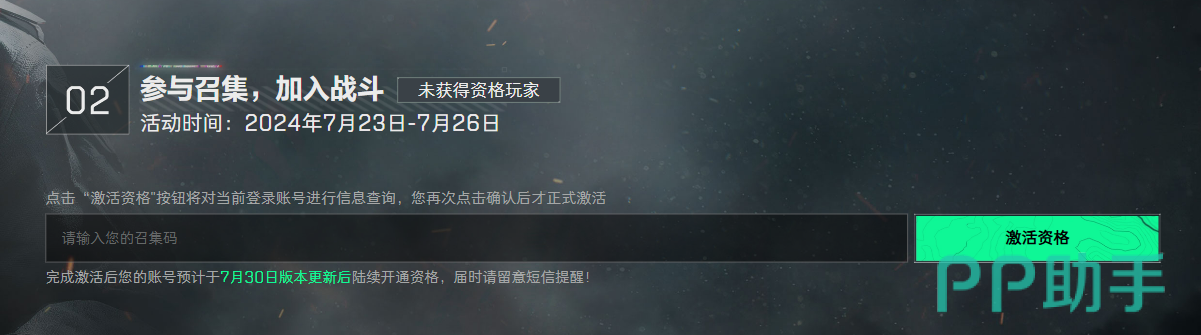 一旦你成功获取了召集码,可以前往活动页面,在指定的输入框中填入你的邀请码,点击“资格激活”按钮,即可顺利激活测试资格。需要特别提醒的是,召集码的有效期为从2024年7月23日至7月26日,请务必在此时间段内完成激活,以免错失良机。