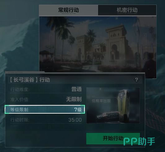 长弓溪谷行动属于常规行动,开启需要等级在7级以上,整个行动限时35分钟内完成。这里盘踞了两股敌对的势力,分别是哈夫克和阿萨拉卫队。长弓溪谷虽然从地图上看去是位于零号大坝的左侧;但由于方向指示标右侧是正北方向,所以溪谷实际上地处零号大坝以南地带;河流从大坝往下流淌,穿过整个溪谷,这里面积较为庞大,特种兵们需要节约时间来完成任务。