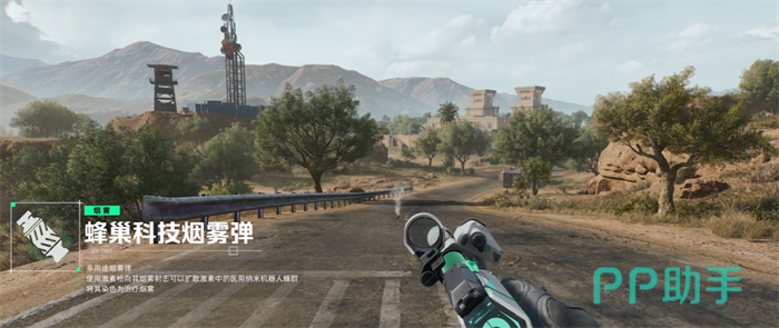 战术道具蜂巢科技烟雾弹:这种多功能烟雾弹可以通过激素枪发射,释放出含有医用纳米机器人群的激素,将其转化为治疗烟雾。尽管染色后烟雾的可见度会显著增加,但它能够为队友提供持续的治疗效果。