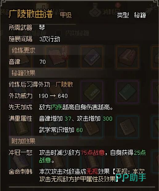 大侠立志传广陵散曲谱怎么获得?游戏里面除了各种武功秘籍职务,琴谱也是非常重要的提升道具,可以有效提高角色实力,而广陵散曲谱就是其中的一个甲级的曲谱,可以获得很好的增益效果,很多朋友都想拿这个曲谱,但是不知道如何获取,下面就一起看看具体的获取攻略吧。