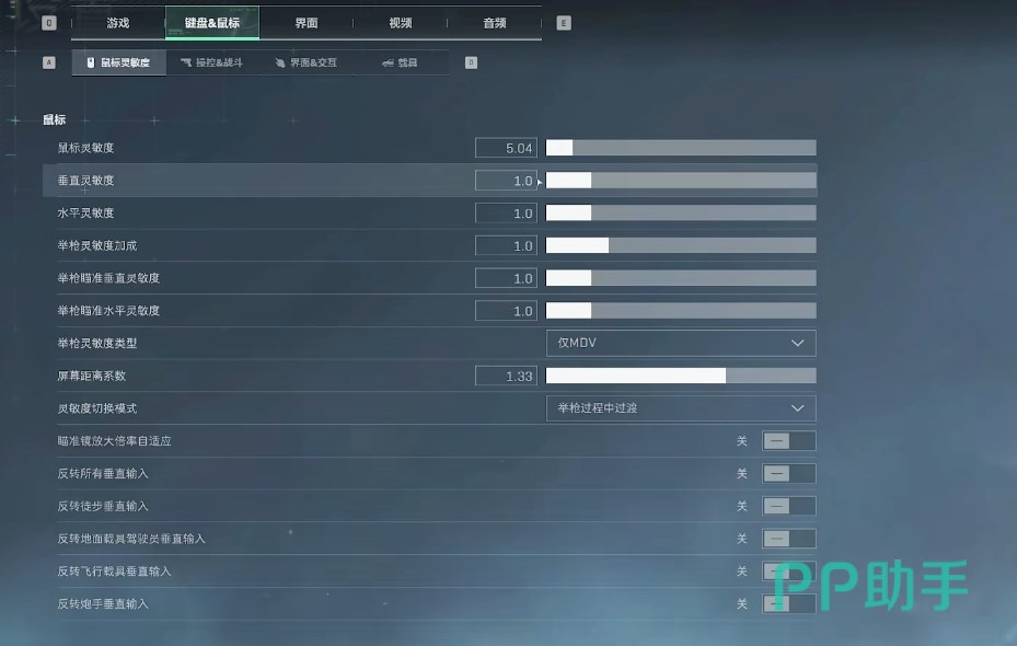 这里以体验较多的PC平台键盘鼠标操作设置为例,首先是鼠标的灵敏度,每个人的鼠标灵敏度是不一样的,建议先去靶场磨合一下,然后设置出出适合自己的灵敏度,这个比键位设置要好使。