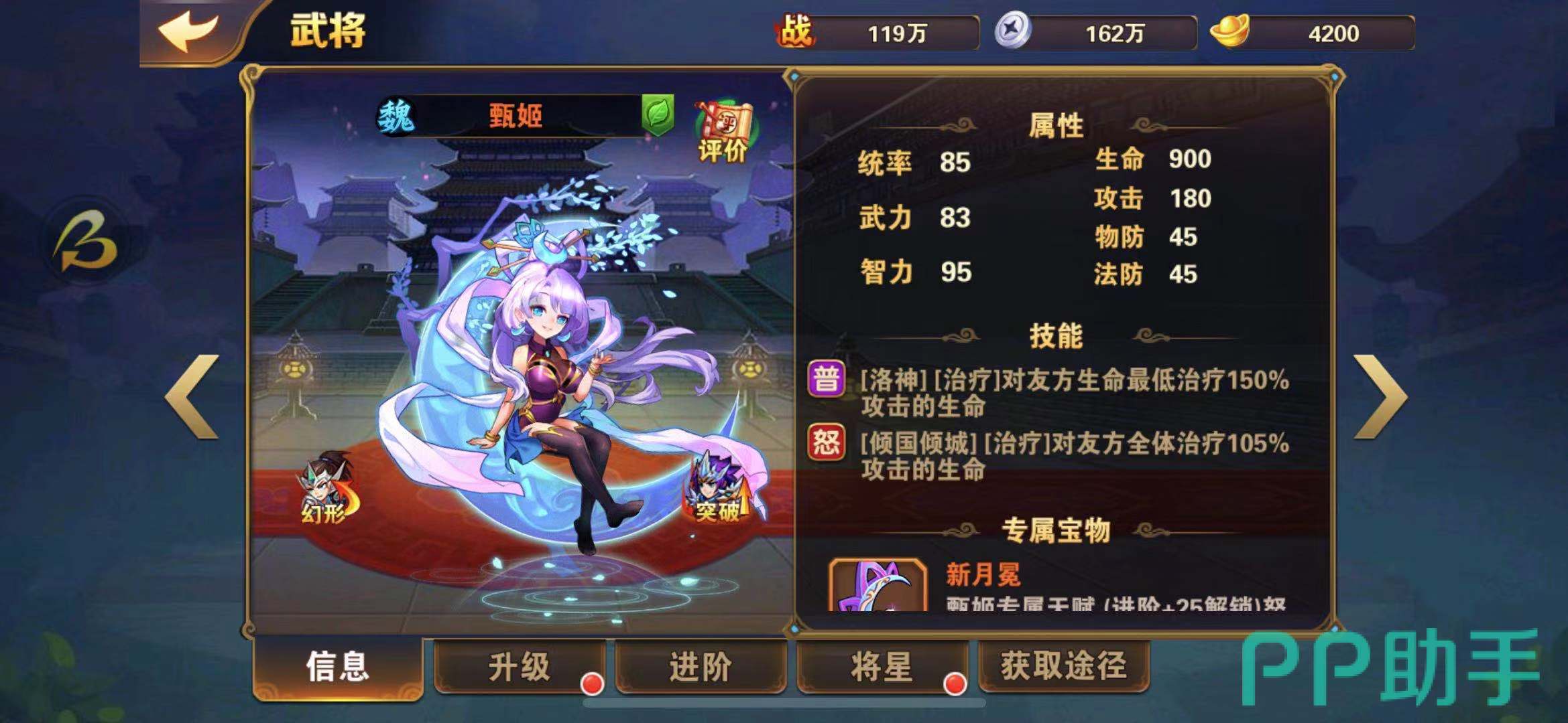 建议使用蔡文姬,回血效果很高而且还能回复怒气,站在五号位和六号位都可以,给玩家的将领回怒回血,保证续航和输出能力,同时还能享有魏国阵营的增益,更加强力。