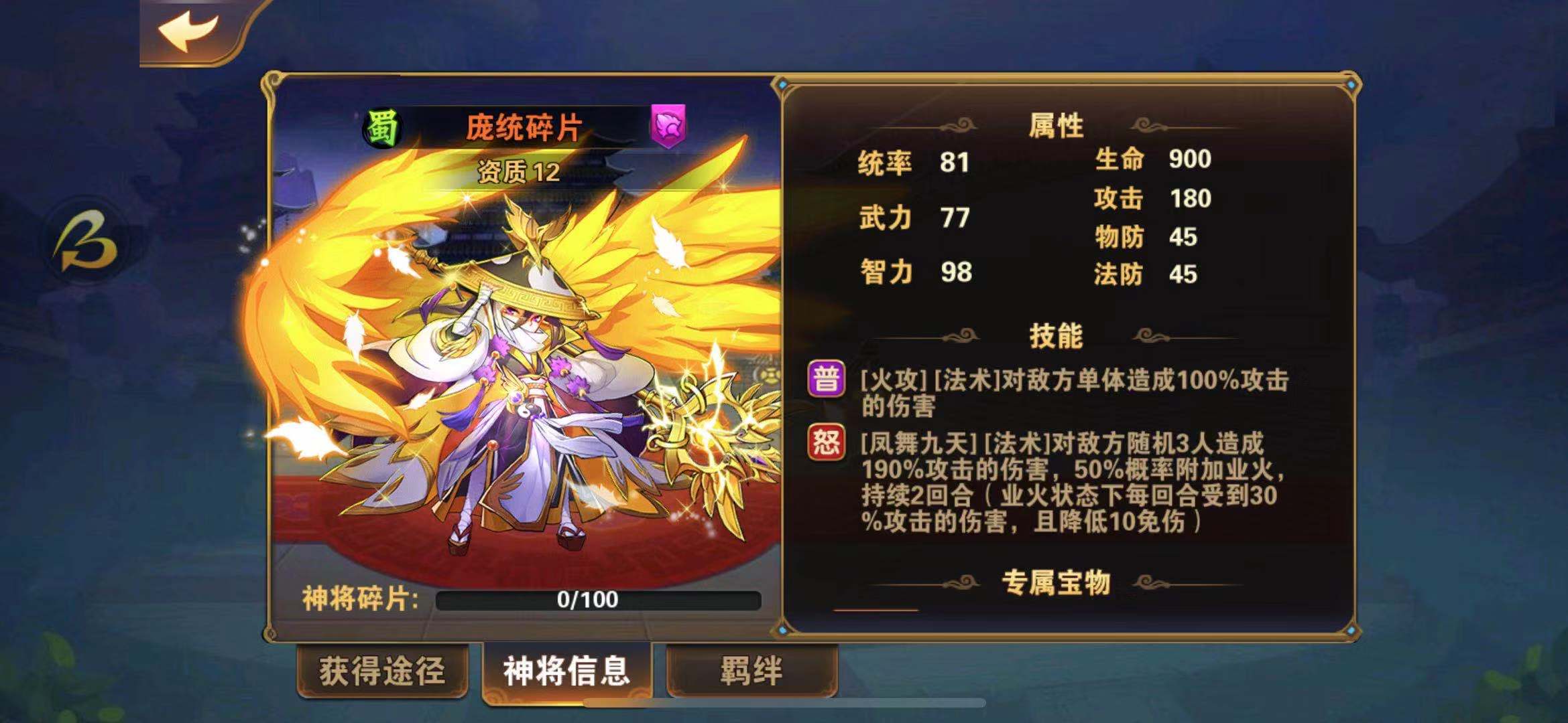 能够施加封印状态的是群势力里面的左慈,是最强的群阵营武将,攻击对方的时候会造成高额的单体伤害并且施加封印效果,把左慈放在和庞统对位的位置,起手将庞统封印住,专属宝物可以达到两回合封印,再配合上其他武将的攻击,能够很快把庞统秒杀掉。