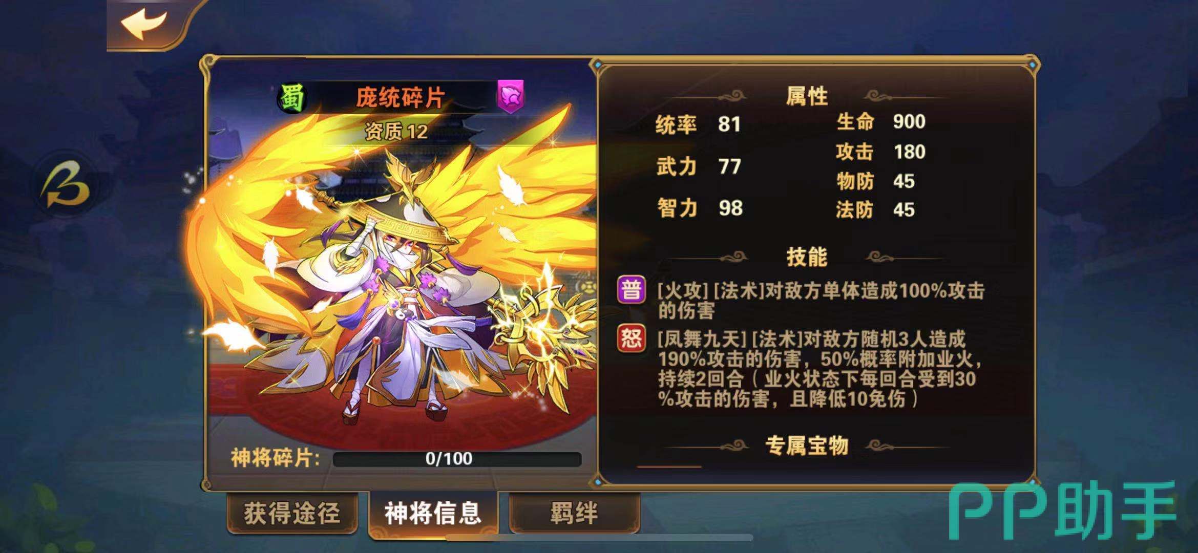 最有效的对付庞统的方式是直接把庞统封印住,被封印住的庞统不能回复自己的血量,并且更狠的是不能释放怒气技能,天赋特性直接失效,所以玩家可以直接把庞统封印住,这样他没有办法依靠特性给玩家施加灼烧状态,也没办法打出特性和技能的连击效果了。