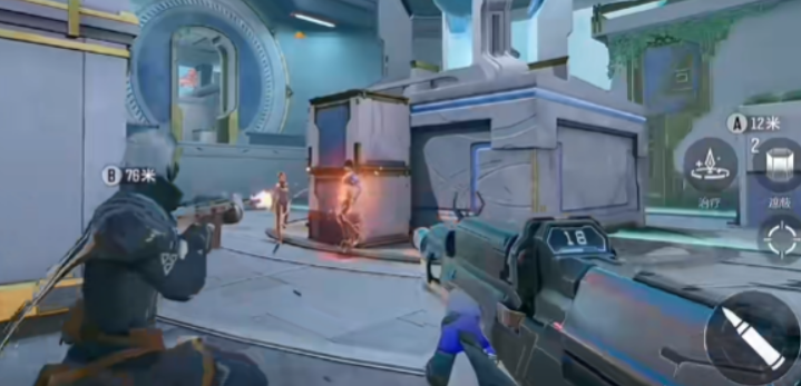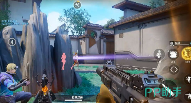 左下方的轮盘则是控制角色移动的关键,通过它可以灵活地穿梭于战场之间,寻找最佳的进攻或防守位置。找到敌人后,果断开火,将其击败,为团队争取胜利。