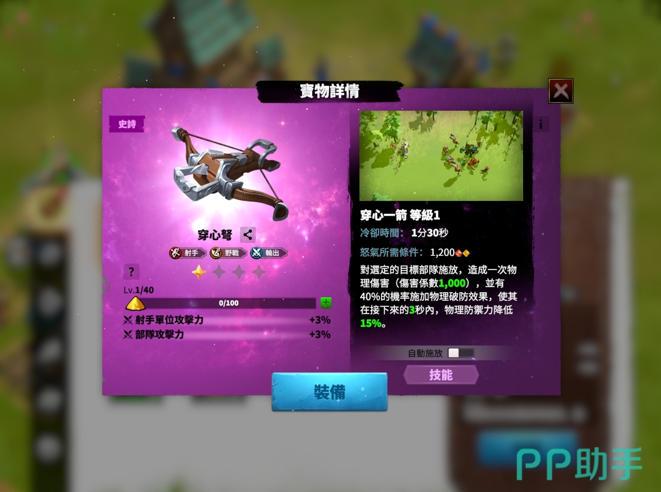 宝物在本质上也有着与英雄一样的自身特性,在英雄装配后相同的特性可直接叠加,例如穿心弩在特性上就很适合刚刚所提到的克岚西,并且克岚西装备后在效果上要比给它装配一个不具备相同buff特性的金武器要好,而这就是相同buff带来的功效,所以人们一定要根据英雄和宝物的特性来进行搭配,尽可能触发相同buff。