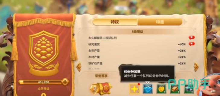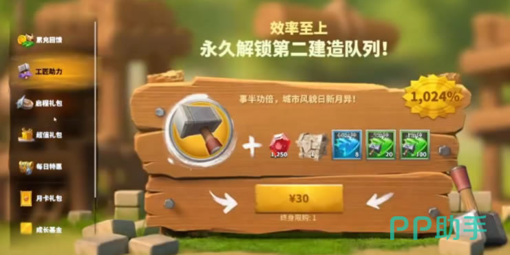 除去VIP等级提升外,游戏还有很多的付费内容具有非常强大的帮助作用。比如工程助力,花费30元购买后不但能得到大量奖励;还可以永久额外解锁一个建造队列,此后建设发展速度远超普通玩家。