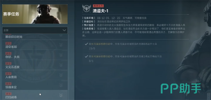 赛季任务整个赛季期间有效,任务内容丰富多样,包括击杀敌人、完成特定地图任务等。赛季任务的奖励最为丰厚,包括赛季限定道具和称号。赛季任务不仅考验玩家的操作技巧,还需要一定的策略和团队协作能力。