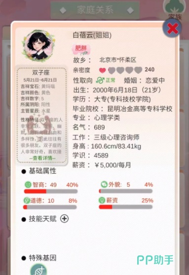 熟悉这种模拟类游戏的都知道,开局之后角色的家庭,身世背景都是随机出现的,包括人物的天赋以及其他的各项数值也都是游戏随意设定的,玩家需要做的就是不管是哪种开局都不断努力过上自己想要的人生,为了能更加贴近现实生活,里面会有大量的考试设定,每一年玩家不会像现实生活一样需要通过考试才能继续进入到下一个学期。
