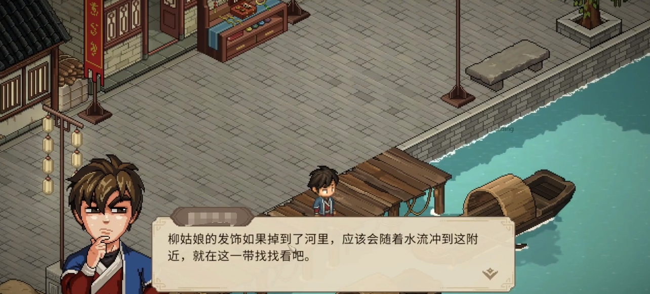 3、帮月咏樱羽寻找发饰,在岸边的船附近拿到后会发现月咏樱羽已经离开,于是决定下次见面再还她。