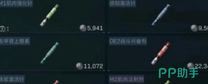 最后就是增强属性的药品,比如甲肾上腺素可以增强角色的奔跑时间,让角色在一定的时间内快速移动,躲避敌人攻击。肌肉强化针可以提升耐力,增加负重效率,比较适合携带很多物品的角色。