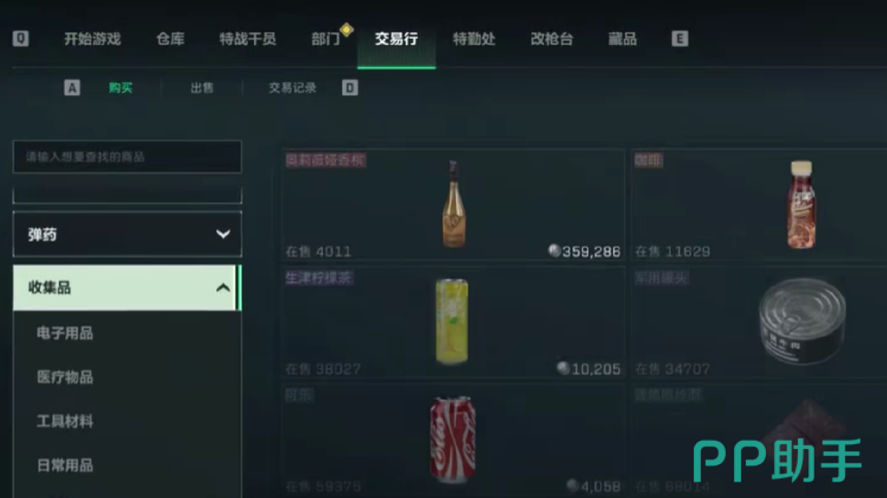 在游戏当中交易行作为重要的系统,能够让玩家购买和出售物资。其实它也作为一个平台,会允许玩家上架各类物资,而在这些物资当中会涉及到不同的种类,每一个种类都会有不同的物品。玩家可以来到交易行,选择自己所需要的物品。