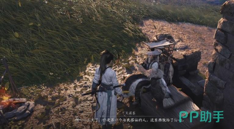 在打开地图时,可以看到有些位置会有一个图标像火焰一样,这个代表的是篝火的意思。当玩家行进来到这里时,一定会在地表找到一盆篝火,而天涯客就坐在篝火旁边;与他对话能拿到一本天下舆图,此时这块区域的迷雾就打开从而向玩家开放了。