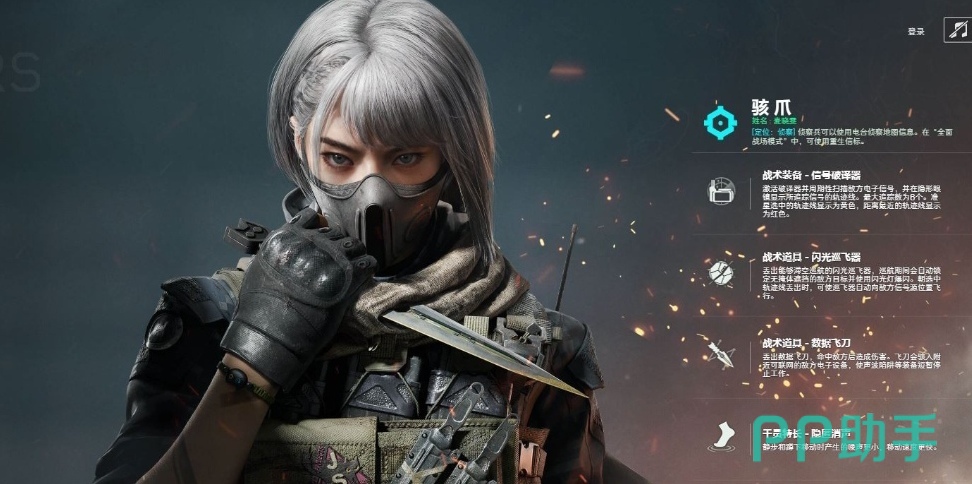 拥有较强的进攻主动性,除此之外,还拥有信号破译器这个功能,可以帮助大家来寻找周边的利器,掌握敌人的行踪,只要在周围布置好就可以了解到敌人的数量来决定是否进行埋伏,更好的提高大家对于环境的感知能力,在作战的过程中,这个作用还是非常重要的,特别是在夺金玩法中,特别适合选择这个角色。