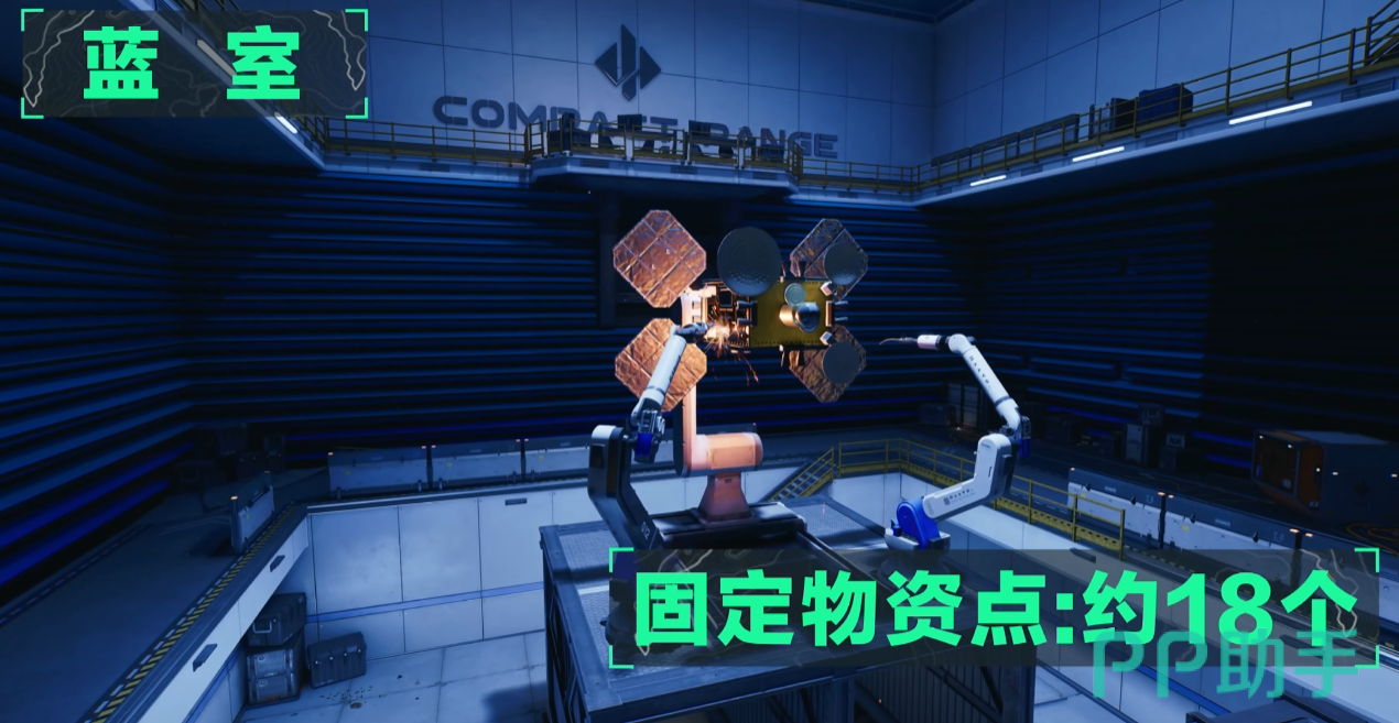 第二个是蓝室,一共有18个物资点,蓝室一层的下沉平台上有许多保险柜可以搜集,还有蓝室二层内也有少许的物资。要注意的是,这里还有一个直升机撤离点,可能会遇到其他的敌人,要小心。