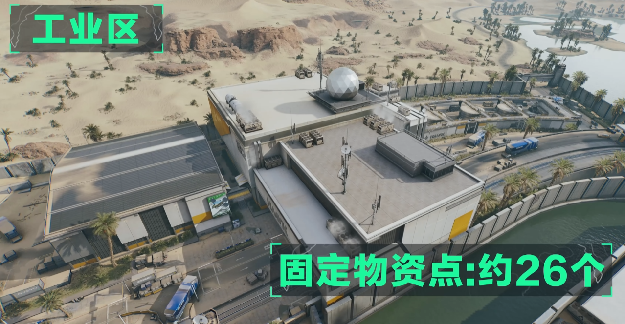 首先需要知道航空基地分为内围和外围两个部分,我们先来看外围的物资点。第一个是工业区,工业区一共有26个物资点,其中吊装室和罐装区的资源比较少,东侧二楼的办公区域物资是最多的,一般都是装在一些工具盒里面。