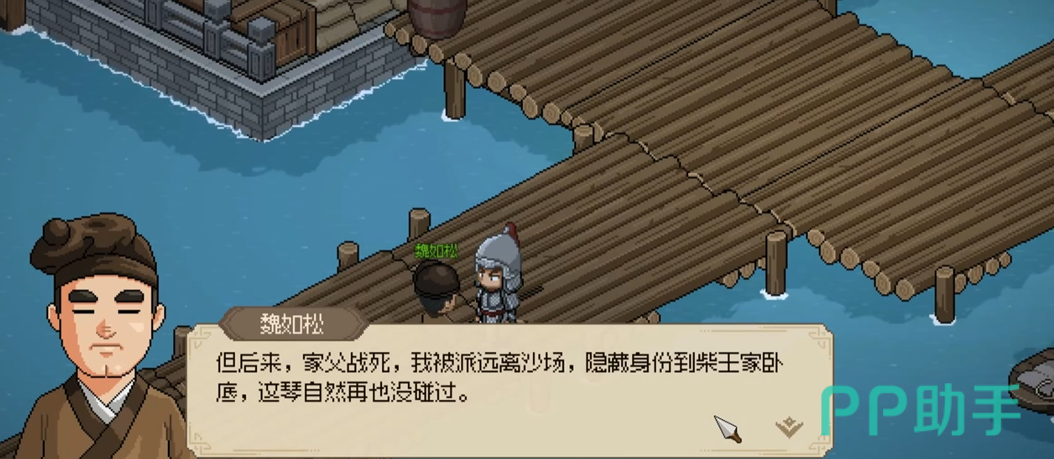 出医馆以后一直往右下方行走,就可以来到凰木港码头了,能看到魏如松站在栈桥上,和他对话以后他会告知玩家自己从小喜欢弹琴,被迫习武,只是自己手指已经废掉,不能再弹琴了,说罢就会把绕梁送给大家,同时还会告知大家韩子都的下落。