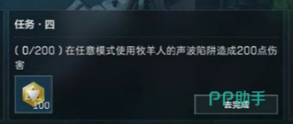 第四个任务是利用干员牧羊人的声波陷阱打出200点伤害。这个陷阱很适合设置在敌人的必经之路上,比如狭窄的走廊或者频繁出现敌人的点位。你也可以在敌人扎堆的地方投放陷阱,即使你不慎倒地,只要陷阱触发了伤害,也会计入任务进度。因此,只要稍微动点脑筋,这个任务也不难完成。