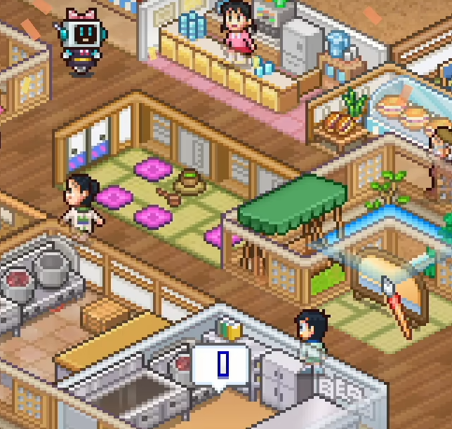 游戏一开始的经营面积并不算很大,这个时候的布局以简约为主。首先这一阶段我们的店铺并不会来很多的客人,所以不需要将店铺内放入非常多的座椅等。同时我们本身的资源也很少,它们不足以支撑我们进行大量物品的采购,所以现阶段我们可以尽量不添加任何的物品。