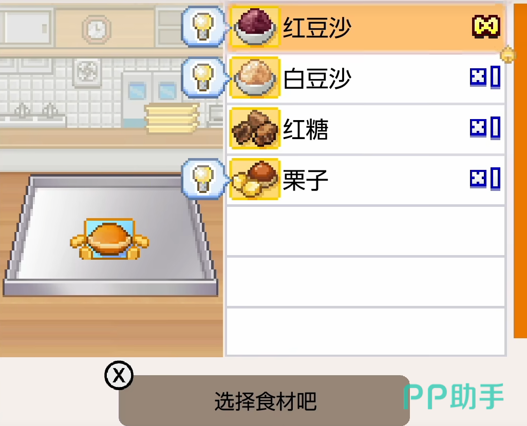 前期玩家们可以获取到系统所赠送的一些材料,我们需要利用材料来开发出新的铜锣烧,这样才能获取到更多的客户。前期的菜单很多都需要玩家们自己进行开发,比如栗子铜锣烧,这个就需要用到红豆沙和栗子才可以制作出来,玩家们前期容易将其和白豆沙进行组合,这样是做不出来物品的。