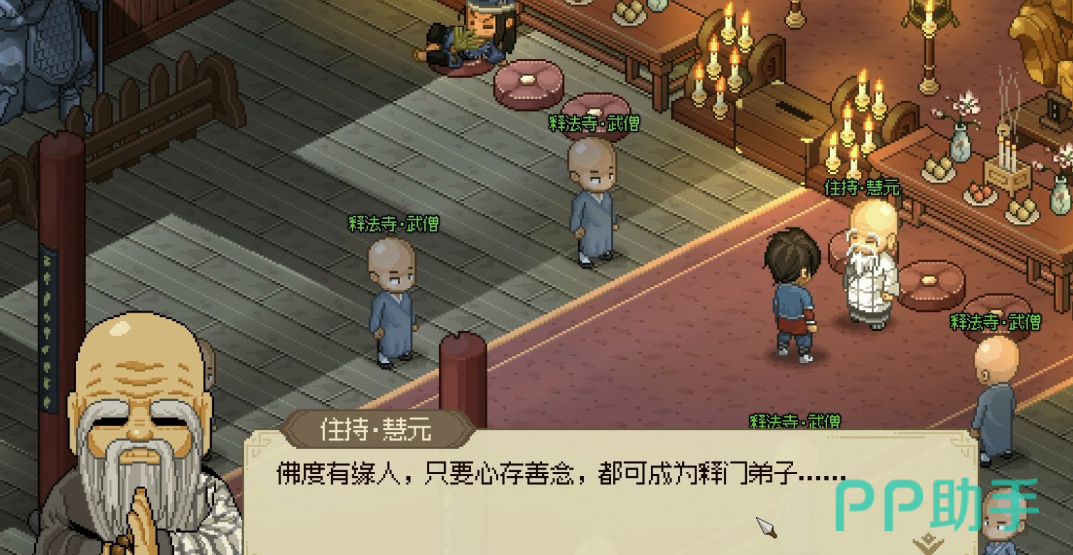 来到中州地区,前往地图上的释法寺,进入后我们直接找里面的慧元大师进行交谈并选择加入,大师会让我们选择俗家还是出家,如果选择出家的话队伍中所有队友的好感度就会清零并且直接离开,所以一定要记得选择俗家,选择完毕后就可以正式加入了。