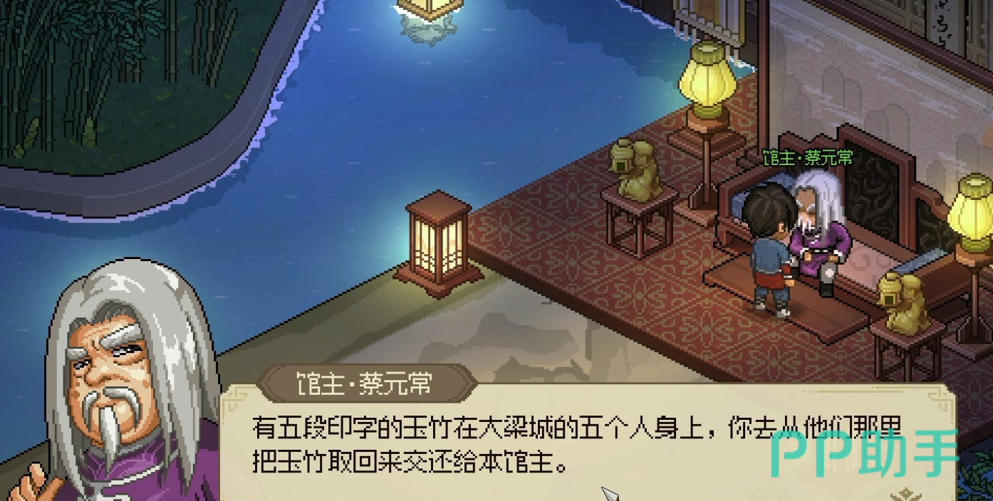 来到儒圣馆后直接找到馆主交谈并选择想要加入,之后会让我们帮助他完成取回玉竹的任务,我们需要先来到客栈旁边,这里会看到一位腿脚明显有问题的老者,选择救治他就会给予我们仁字玉竹,再找到一个商贩帮助他卖水果,这里注意玩家不需要特意记住价钱但是一定不能涨价,随后他会给我们信字玉竹,去往擂台这里有一个跪在地上的拳师,帮助他打败两个年轻人,可以拿到一个义字玉竹;