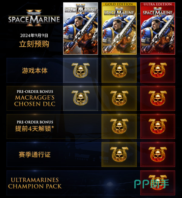 好久不见宝子们,今天小编想要给大家聊聊战锤40K星际战士2版本区别,这是一款第三人称的fps游戏,将于9月9日在全球发售,该游戏在steam平台已经开启了预约模式,游戏拥有三款不同版本,应该有很多的玩家都为此好奇吧,那就跟着小编一起来了解下吧,顺便给大家介绍下预购都可以获得哪些奖励。