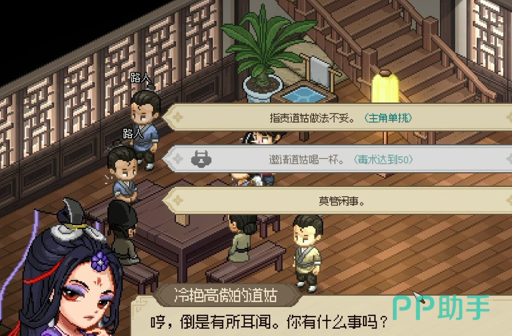以上就是大侠立志传道姑剧情介绍,如果玩家喜欢这段剧情的话,可以到游戏中亲自体验一下,而且道姑这个角色本身实力强大,十分适合加入我们的队伍,相信她的加入会给玩家们带来不小的助力,让我们更加游刃有余。