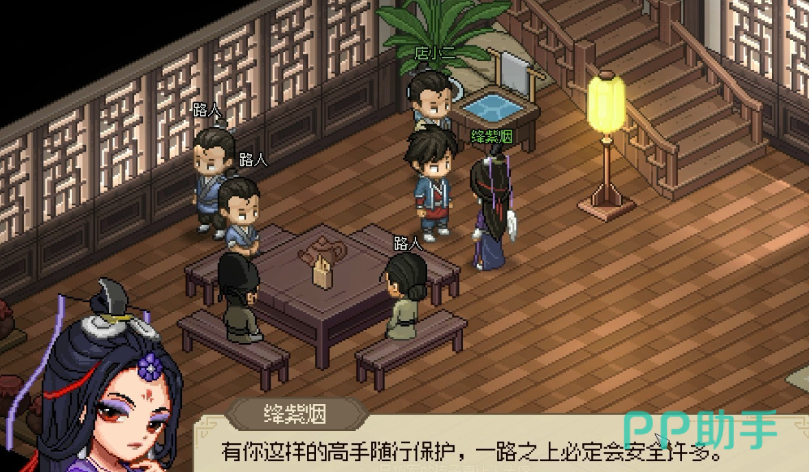 在福临客栈遇到这位道姑后可以与其搭话,注意这里需要我们的名声在4级或以上,在对话选项中选择单挑并胜利后,会知道有九黎部落的人正在抓捕她,选择邀请她一同对付敌人。