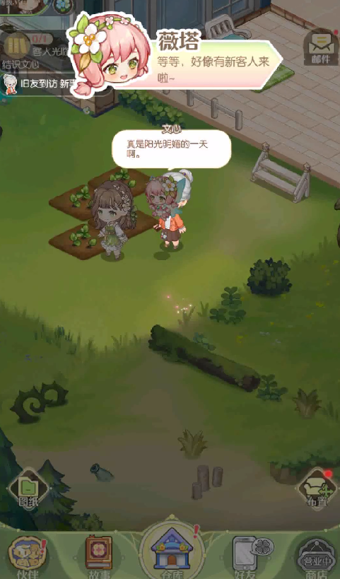 游戏中也有NPC造访的设定,当玩家结识了某个NPC时,他会出现在伙伴列表当中,随着天数的变化,NPC会随机前往玩家的家园之中,玩家可以和NPC进行对话获得每日的奖励,也可以派遣NPC前往店铺之中帮忙营业。