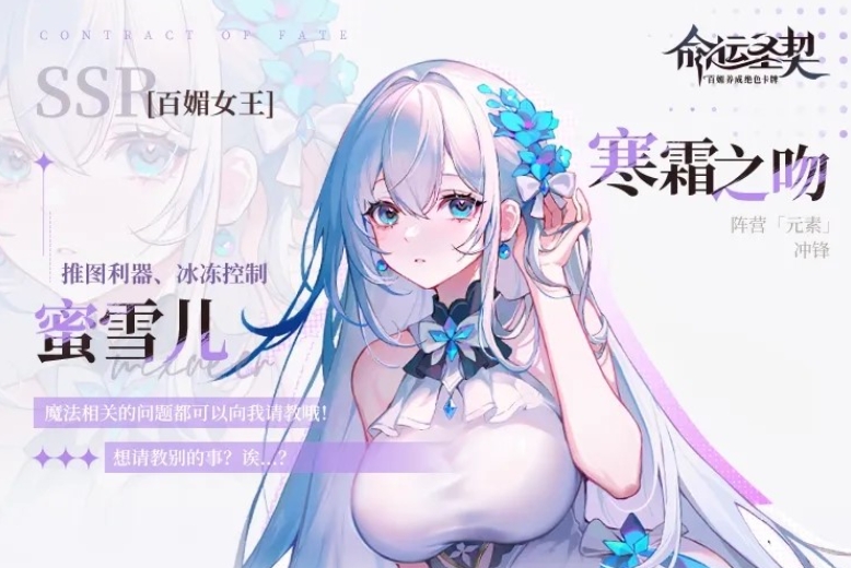 蜜雪儿在游戏中不仅仅是薇尔的姐姐,更身兼法卡斯帝国的大公主与宫廷大法师双重尊贵身份,因此在服装设计上,蜜雪儿的形象上主要是体现了宫廷风范,外观当中将纯洁的冰霜之花作为蜜雪儿的象征,这不仅体现在她的人设上,更在服饰配色上得到了精妙的呈现。