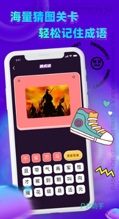 这款游戏适合所有人,不论是学生还是大人,都能乐在其中。它以可爱的卡通画风呈现,搭配丰富的成语故事,让大家在享受游戏乐趣的同时,也能加深对成语的理解和记忆。每过一关,我们都有机会深入了解自己感兴趣的成语,增长见识。游戏以成语解谜为核心,游戏规则比较简单,还支持在线对战,和朋友在线PK,更有各种有趣的图形等大家来破解。