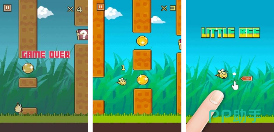 想要在花丛里采蜜,就需要有比较灵活的控制能力以及平衡力。游戏开始之后,玩家会进入到一个充满重重障碍的场景中,在这里需要使用手指上下滑动的方式控制蜜蜂在场景里不断躲避这些障碍,除了躲避障碍之外,还需要在游戏里收集金币,这样可以让蜜蜂积累资金,兑换更多不同的皮肤。