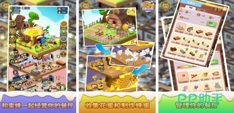 甜品店是很多人梦寐以求开办的商店种类,在蜜蜂小当家这个游戏里就可以和这些小动物们一起打造一个属于自己的森林甜品店,蜜蜂可以借助自身的便利性去森林里面采蜜,在财迷之前还要种花,采完蜂蜜之后要去加工制作各种甜品,除了售卖物品之外,还需要选择不同的装饰,让餐厅能变得更加精致吸引更多动物来这里购买甜点。