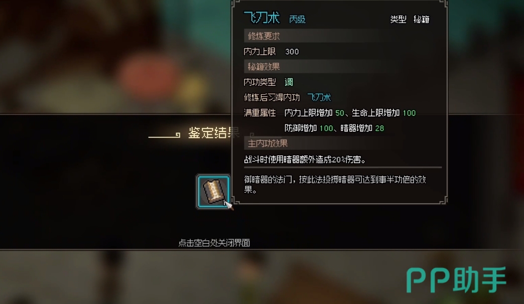 但要注意不知名秘籍鉴定出的功法是随机的,有概率会拿到比较稀有的功法,所以还请想刷好功法的各位在鉴定前先存档。往后玩家们若是再通过其它的方法拿到类似不知名秘籍的东西,也可以按该方法来完成对秘籍的鉴定,只要注意鉴定所需的等级即可,总体来说原理都是一样的。