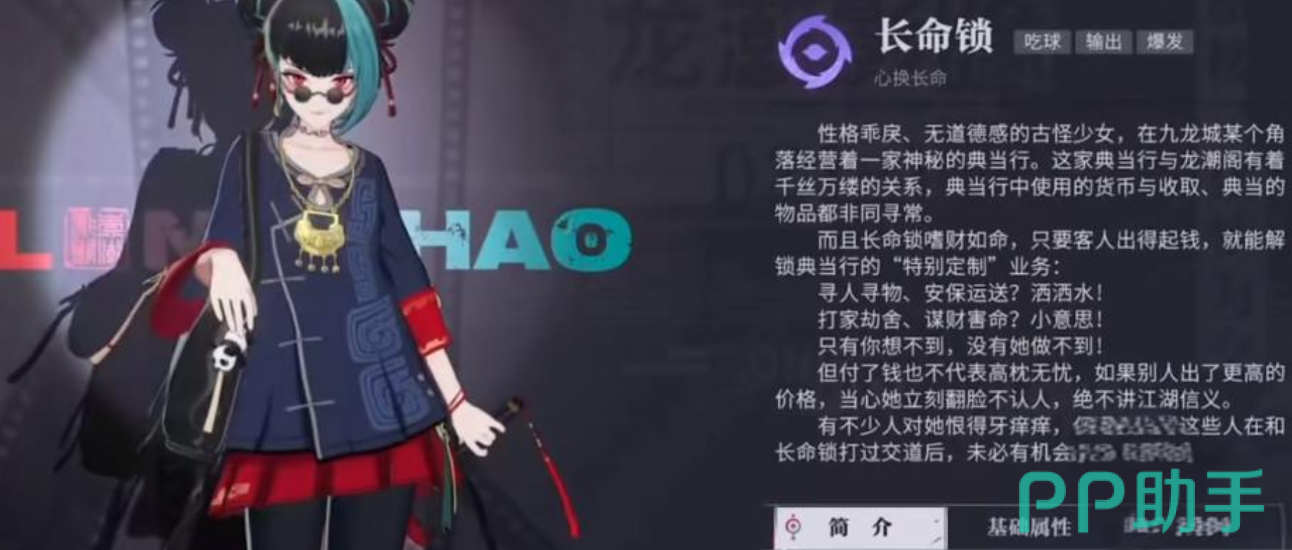 玩家在初期养成的时候建议长命锁,因为该角色性格乖戾,却是十分古怪的少女,他跟龙潮阁有着千丝万缕的联系,不过他的实力却十分的强大。