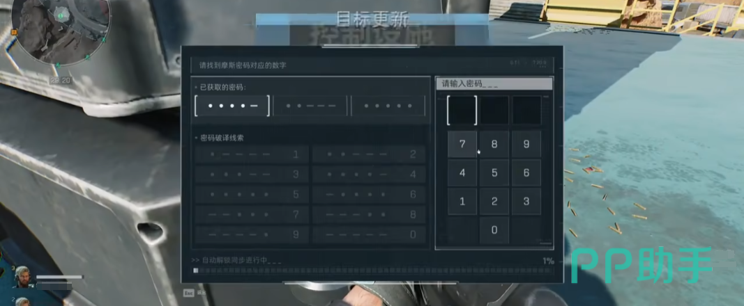 一下飞机就先去任务地点,先要去那个长得有点像炮台的地方,在这里接取任务,但是这个任务并不是每一局都有,只有有这个任务的情况下才能够接取,任务接取完成之后,就可以看到前方是有一个小电脑的,需要在这里输入密码,这个密码是有很明显的提示的,没有任何的难度。