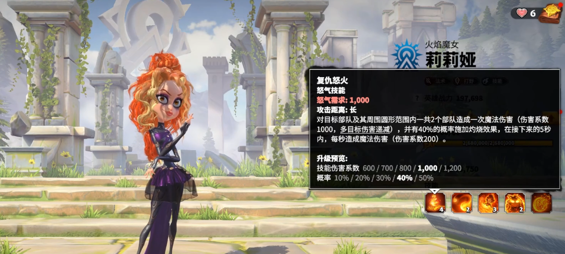 莉莉娅总是出现在各种配队中,这是一个全时期都非常好用的英雄,定位法术输出,有着高且稳定的法术输出,技能天赋树也很给力,不管是PVE还是PVP的表现都挺不错。无论是零氪微氪玩家还是氪金大佬这个角色都是要培养的。