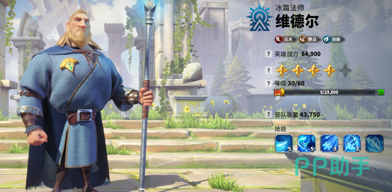 维德尔的被动则是对法术单位的攻击、血量加成,提升部队英雄的技能伤害,这一点也让他很适合给莉莉娅当副将。而且在受到英雄技能伤害的时候会获得护盾吸收一定的伤害,护盾有冷却,每20秒最多触发一次。从他的技能特点可以看得出维德尔的功能性很强,自身范围输出很强的同时也可以给主将增伤,同时有护盾、减攻、减速等效果。