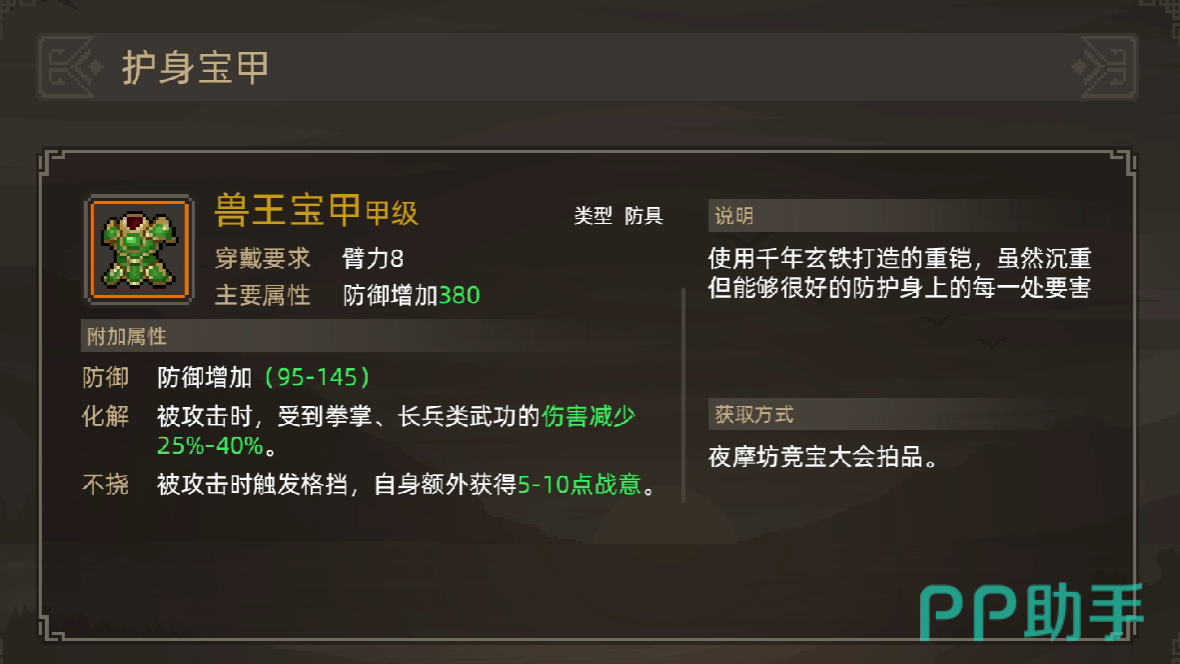 以上内容就是本期小编给大家带来的大侠立志传金色防具获得攻略的全部内容了,在游戏中金色防具是最顶级的甲级防具,但是玩家也是需要注意他们的搭配哦,希望看完本期内容的小伙伴们可以实际进入到游戏内体验一下哦。