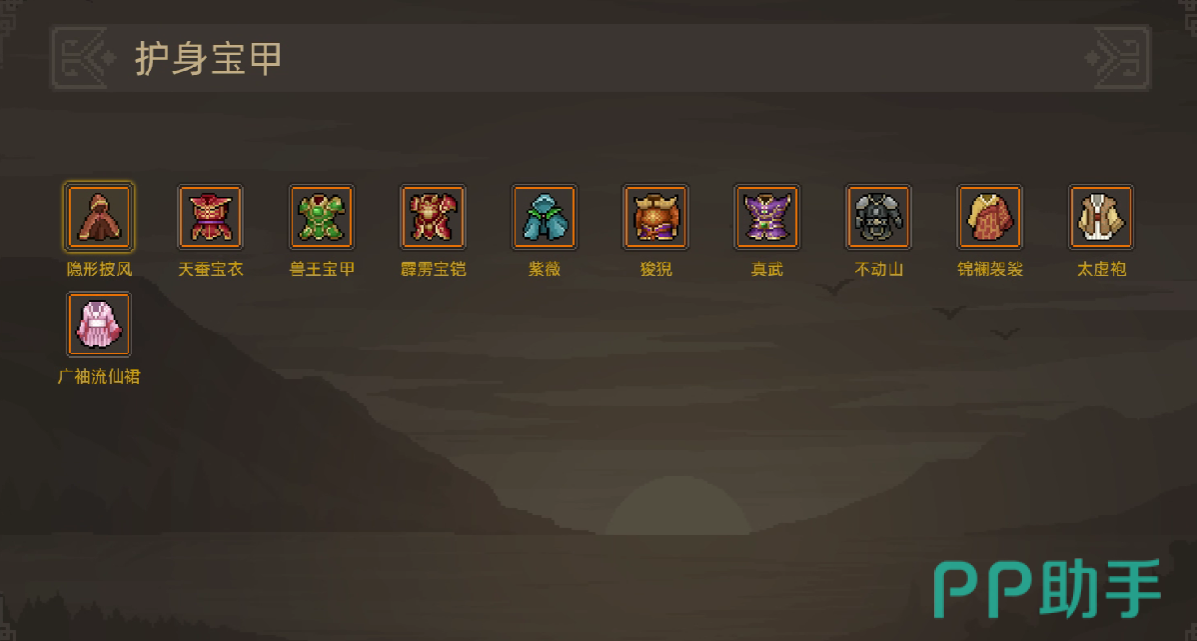 游戏中总共有11件不同类型的金色防具,他们分别是,隐形披风、天蚕宝衣、兽王宝甲、霹雳宝铠、紫薇、真武、不动山、太虚袍、广袖流仙裙、狻猊、锦斓袈裟,除了各个门派势力特供的金色防具,其他的金色防具都可以通过拍卖来获得,太虚袍就是其中一个门派特供金色防具,玩家需要前往道玄宗打扫大殿五次,并且还要具备一定的机关能力,随后拜入道玄宗,再去道玄宗中习得真武本领,最终宗主会赠送玩家太虚袍,但是想要获得该金色防具的流程比较长,建议玩家率先从拍卖行之中获得其他金色防具。