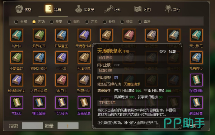 如果说无极洞是防御王者,那么天魔噬魂术则可以说是另一种极限玩法的象征。这门内功虽然在战斗中不如无极洞那般硬核,但它强大的恢复能力和附带的属性提升,让它在后期战斗中表现出色。尤其是配合儒圣馆长生任务时,天魔噬魂术能够让玩家轻松获得额外的五维加成和生命内力的提升。在面对持续战斗时,天魔噬魂术的回复效果几乎无人能敌。