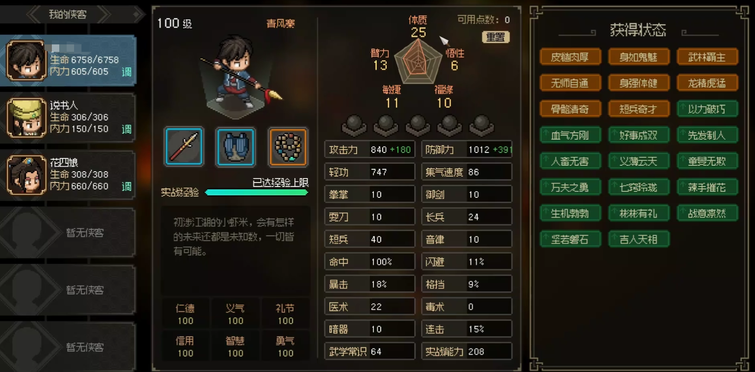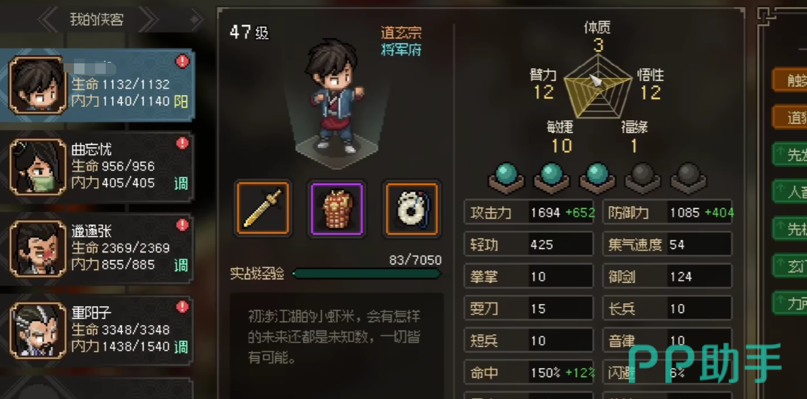 以上内容就是本期小编给大家带来的大侠立志传自愈体质提升攻略的全部内容了,在实际的战斗当中,玩家也可以通过和别的NPC结缘来提升自己的基础属性值哦,希望看完本期内容的小伙伴们可以进入到游戏内体验一下。