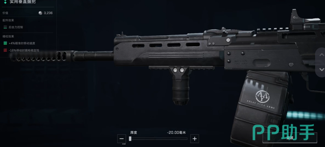 S12K的厚度也是需要调整的,对玩家来说也是一个提升操作手感的关键因素。如果你需要更高的稳定性,可以把厚度拉满,这样射击时后坐力会更小。如果你更在意机动性,想要灵活走位,厚度则可以调到最低,便于快速移动和绕背操作。不同的战术需求下,厚度的调整可以让S12K适应不同场景的战斗。