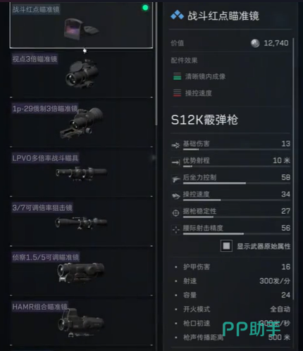 S12K作为一把近战神器,本质上对倍镜要求不高。不过,倍镜的选择可以根据个人喜好来定。喜欢打远一点的朋友可以选个高倍镜,比如3倍或4倍,虽然用起来可能有点别扭,但在某些情况下也能给你提供出其不意的压制火力。如果你偏向快速冲锋或近距离交火,那么一个红点瞄准镜则是更为合适的选择,简单实用且不影响视野。