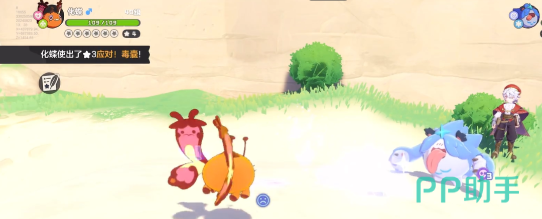 玩家平时可以恩佐进行切磋,切磋以后会有奖励哦,这里就提供恩佐的大致打法,恩佐的第一支精灵是月牙雷熊,这个精灵的特点就是比较肉,普通的伤害会很低,因此可以使用化蝶进行毒气消耗,这样就能满满磨死这只精灵。