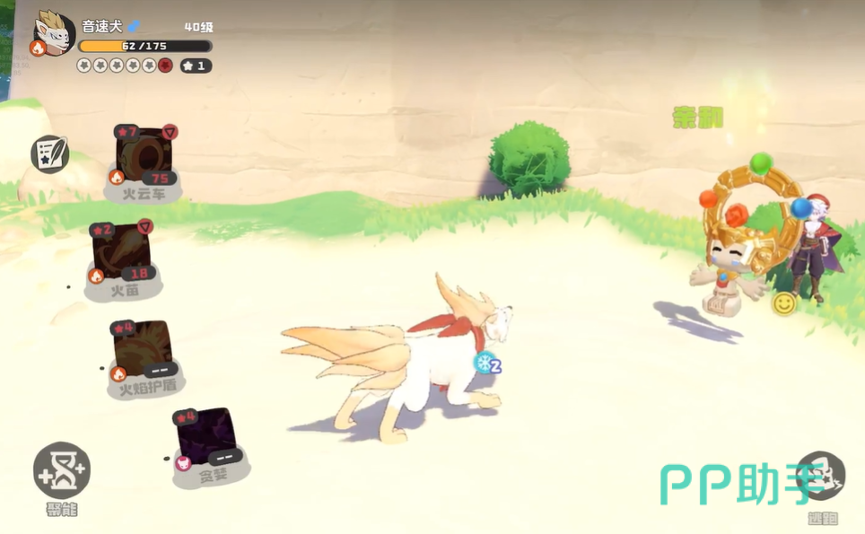 第二个是仪式巨像,这个精灵的单体伤害较高,我们直接派上音速犬进行消耗,不过中途恩佐会换一个雪灵上场,而我们的音速犬是火属性的,基本上几个火属性就能把雪灵杀掉,之后会进行派上是仪式巨像,这时候音速犬应该死掉了,换上雪影精灵进行互换。
